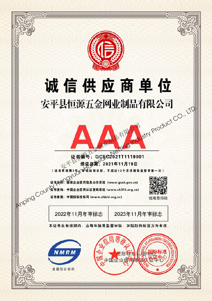 多年來,安平縣恒源五金網(wǎng)業(yè)制品有限公司堅(jiān)持“科技興企、質(zhì)量立業(yè)”的經(jīng)營(yíng)理念和“誠(chéng)心為本、客戶至上”的合作宗旨,優(yōu)化生產(chǎn)工藝,打造優(yōu)質(zhì)產(chǎn)品,提供完善的服務(wù),受到國(guó)內(nèi)外客戶的一致好評(píng),產(chǎn)品行銷全國(guó)各地,并出口美國(guó)、德國(guó)、韓國(guó)、日本、臺(tái)灣等國(guó)家和地區(qū)。