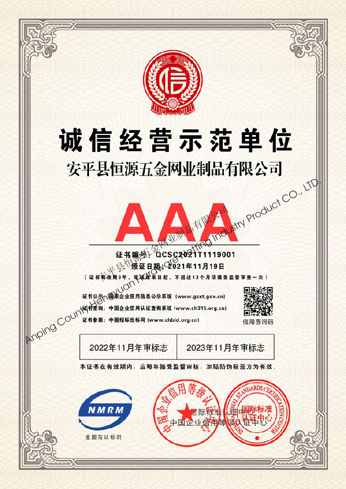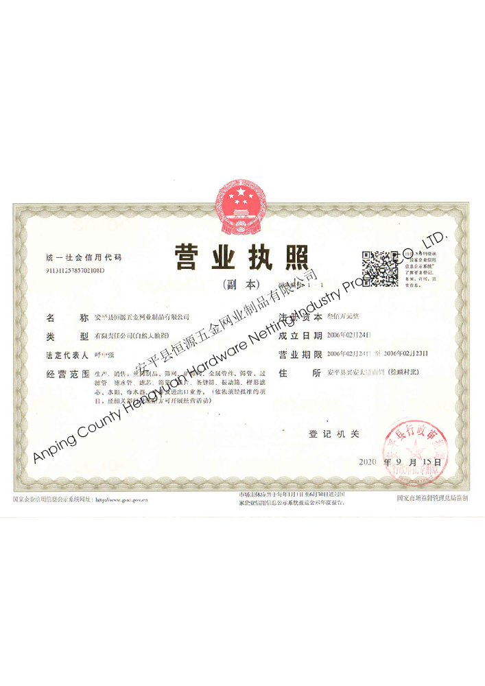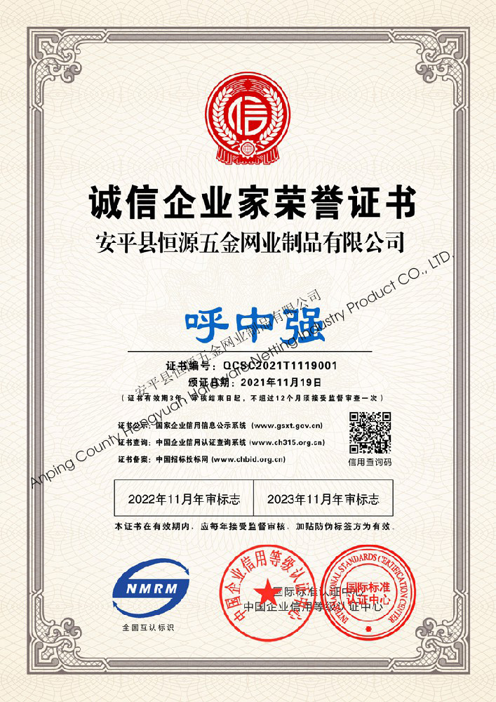 安平縣恒源五金網(wǎng)業(yè)制品有限公司,位于“絲網(wǎng)之鄉(xiāng)” 河北省安平縣,其前身為安平縣礦篩網(wǎng)廠,成立于2006年,注冊(cè)資金300萬(wàn)元,是建廠時(shí)間較早、生產(chǎn)銷量較大的礦篩網(wǎng)骨干企業(yè)。